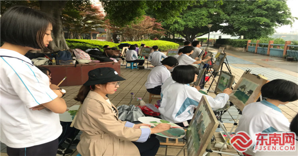 美术生户外写生。三明市第九中学 供图 以美立校,美术教育特色凸显 2020年,三明九中艺考生取得福建省美术专业高考第一名,该校已经连续两届考生取得福建艺考美术专业第一名。 一个山区城市,为什么在艺考方面有如此优秀的成绩? “我们三明经济基础比较弱,社会还有家庭对于艺术的认识不全面,接受程度也较小。”三明九中党总支书记魏润俊说道,学校将美育素材融入教学中,在全校学生中普及美术教育,其中,针对大部分美术零基础的学生,从点线面最基础开始教起,立足校本培养,所有学生零收费。每年高一新生到校后,学校都会开展生涯教育和美术知识的普及教育,到高考时,大约有300人会报考美术专业,约占学生总数的45%,其中的95%以上能够考入本科院校。 “厚积薄发”,从2002年开始,三明九中提出了“向着美的方向成长,以美成就师生、以美发展学校”的教育价值取向,让美为学校办学引航。以美定办学之格,以美成育人之品,美育之花结出了丰硕之果。 近年来, 三明九中秉承“让每一个学生走向成功”的办学理念,坚持“严管理、重创新、求实效、出特色”的办学思路,在文化建设、师资提升、课堂增效、特色发展、多元办学等方面不懈努力,坚定不移地走优质高效和特色发展之路,成为了福建省优质特色高中。