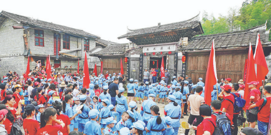 三明市讲好红色故事,激励红色担当,发展红色产业,打造一批红色文化精品旅游线路。图为首批中央红军村御帘村发展红色文化旅游,中小学生通过红色文化的熏陶,弘扬革命精神、传承红色基因。(三明日报记者 周志鸿 摄) 传承红色精神 凝聚奋进力量 ——三明市持续做实做足“红色三明”文章工作侧记 ●三明日报记者 郑丽萍 通讯员 王 建 9月9日,走进三明中央苏区“风展红旗如画”陈列展馆,工作人员正加紧展板、艺术品、多媒体等制作。目前,展厅总体施工已完成80%,预计9月底将基本完成最后的展陈布置工作。 今年以来,我市持续做实做足“红色三明”文章,唱响“风展红旗如画”品牌,红色故事宣讲持续不断进行,积极研究梳理、对接争取苏区政策项目支持,推进红色产业发展,推动三明红色优势加快转化为三明发展优势。 红色基因“活态传承”,弘扬红色精神 8月30日晚,我市情景音乐剧《风展红旗如画》上演,300多名观众一同观看了演出,重温红色历史、汲取奋进力量。 这部情景音乐剧酝酿和创作历时1年多,是我市继交响诗组歌《风展红旗如画》之后第二部红色题材的原创大型情景音乐剧。 “经过一个多月的排演,我对那段动人心魄的历史有了更深入的了解,尤其是革命先烈投身信仰、奉献革命的英勇壮举,让我感触很深。”宁化县文化馆文化志愿者、这部剧的群演李林蔚说。 为了让红色故事“活”起来,我市创新方式方法,采用红色情景剧、线上音视频等群众喜闻乐见的形式,把红色三明故事讲出新意来,让红色精神入脑入心、耳熟能详。 红色剧目震撼人心,红色故事宣讲感人肺腑,它们都以“活态传承”的形式,唱响了“风展红旗如画”品牌。 自去年7月份赴京赴省宣讲以来,三明红色故事宣讲已经成为一面旗帜,在全国各地飘扬。 8月27日,红色三明故事宣讲团再次晋京,在中粮集团总部和营养健康研究院开展了两场宣讲活动,共240余人在场聆听。中粮集团还将红色故事宣讲进行线上同步直播,在线观看18万多人次,大大提升了红色宣讲的效果。 今年以来,我市选派小分队赴12个县(市、区)委中心组及省生态环境厅、省工信厅、省建工集团等单位开展巡回宣讲36场次,并创设中央苏区三明讲坛,举办了7期讲座。红色故事宣讲每到一处,都点燃了观众的红色激情,激发了他们的红色记忆,弘扬了红色精神。 根植红色基因, 激励红色担当。我市通过常态化开展革命传统、革命精神教育,激励党员干部传承红色基因、强化红色担当,营造了“不忘初心、牢记使命,推进老区苏区高质量发展”的浓厚氛围。 深挖苏区政策“金矿”,激发红色动力 8月27日至28日,我市晋京拜访了国家文旅部、中国林业集团有限公司、国家发改委、中央文明办等国家部委和企业,沟通对接有关事项,争取政策、项目、资金支持。 当前,中央及省上对老区苏区振兴发展的支持力度不断加大,国家发改委正在谋划“十四五”时期革命老区振兴发展工作,如何利用好这些契机,积极争取政策支持? 不打无准备之仗,我市成立苏区办后,组建工作专班,开展政策对接业务培训,建立苏区政策项目库,形成政策诉求事项和项目126项,梳理全方位高质量发展超越9个方面、24个具体事项,提请国家发改委支持。 同时,在学习借鉴赣州等地经验的基础上,我市继续加强晋京赴省对接,围绕国家部委、省直机关的职能、优势、政策导向,深挖政策“金矿”,积极争取一批重大政策 、重大改革、重大平台、重大项目支持,把先烈先辈为之奋斗的事业推向前进。 吃透政策,才能用好用足政策。去年以来,我市在争取国家和省上政策资金支持方面捷报频传:全市12个县(市、区)全部列入国家第一批革命文物保护利用片区分县名单;我市被纳入中组部博士团和“西部之光”访问学者支持范围;建宁、尤溪列入国家农村产业融合发展示范园…… 今年虽受疫情影响,我市各级各部门激发红色担当,继续做实项目谋划申报工作,积极对接争取上级支持。值得一提的是,明溪已初步策划与国家中医药管理局对接药号申报等10项、“中医药+”重点项目38个,总投资3.2亿元的明溪沃林中医药健康系列产品生产项目已落地实施。 目前,全市共获得上级各类转移支付资金146.41亿元。三明大地上,红色精神正转化成红色动力,助推我市高质量发展超越。 助推红色产业发展,迸发红色活力 初秋,泰宁县新桥乡岭下村依然热闹。 一拨拨游客,在重温那段烽火连天的激情岁月后,吃农家饭、住农家院,悠然地享受着乡村生活美好和惬意。 游客来了,人气旺了。岭下村依托良好生态环境,鼓励群众因地制宜发展生态种养产业,把高山红莲、优质稻、茶油等土特产品卖出山外,红色文化转化为发展优势,让群众走上脱贫致富路。2017年,全村建档立卡贫困户全部脱贫。 一个地区的发展靠什么?无疑是项目。我市以项目支撑红色产业发展,让红色文化更加鲜艳,红色名片更加耀眼。 近日,国务院公布第三批80处国家级抗战纪念设施、遗址名录,我市大田县均溪镇玉田村的大田“第二集美学村”榜上有名,成为福建省唯一入选的项目。 去年8月,中办、国办联合下发《长城、大运河、长征国家文化公园建设方案》后,我市先后6次赴京进省汇报争取支持,组建工作专班认真制定三明段规划建议。经过积极沟通对接,我市宁化段被列入长征国家文化公园重点建设区,其他各