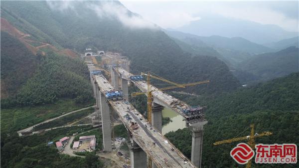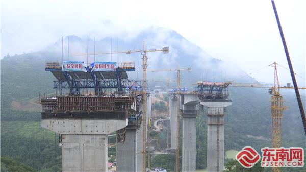 大桥的悬浇梁合龙进入冲刺阶段。 陈振鹏 摄 东南网三明10月9日讯(本网记者 蔡晓卿 通讯员 陈道波 陈振鹏)国庆假期许多建设者仍坚守在岗位一线,用辛勤和汗水诠释劳动美。据了解,为了完成省市高指年底通车的目标,省重点项目莆炎高速尤溪段的工人们都坚守在一线,全力推进项目建设。