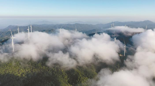 在尤溪县汤川乡珠峰村东南侧,白岩山至大模山沿线的山脊上,一个个白色“大风车”直耸云霄,旋转的风机与美丽的自然风光交相辉映,为壮美大山增添了新的风采。汤川风电项目,是目前我省山地单机装机容量最大的风力发电项目,一期建设安装的16台风力发电机,总容量48兆瓦,预计每年可为电网提供清洁能源电量近1.3亿千瓦时。图为无人机航拍的汤川风电项目。(吴振湖 严良钤 张朝泉 摄影报道)