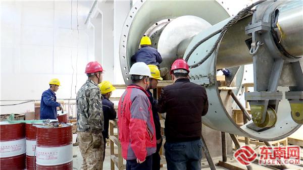汶潭水利枢纽工程的机组安装现场。黄功兴 摄 汶潭水利枢纽工程现场安装负责人李俊介绍说,目前一号机安装主轴在装配,转轮已经装配完了,预计今年四月份一号机组可以投产发电,二号机组也在逐步进行中。