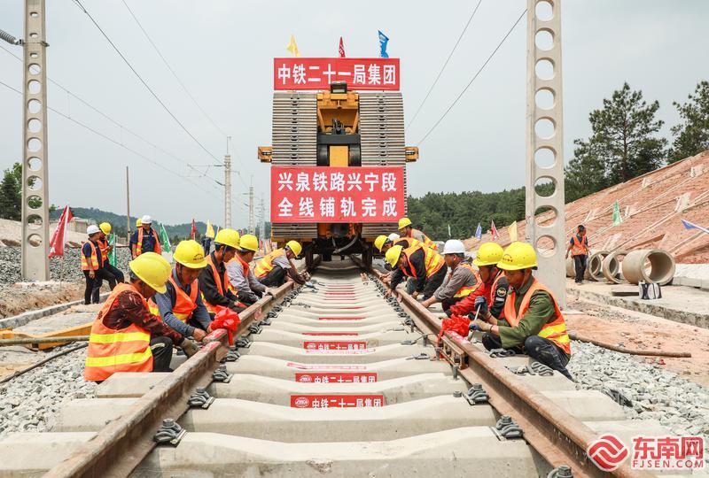 东南网3月30日讯(福建日报记者 吴宏雄 通讯员 丁波 杨存兴 范日樑 文/图) 习近平总书记近日在福建考察时强调,要推进老区苏区全面振兴,倾力支持老区苏区特色产业提升、基础设施建设和公共服务保障等。总书记的重要讲话让广大老区苏区人民心生暖流备受鼓舞。 记者从中国铁路南昌局集团公司获悉,29日,随着铺轨机将一对500米长轨铺设在宁化火车站进站信号机处的轨枕上,标志着兴泉铁路兴(国)宁(化)段正线铺轨任务全部完成,为开通运营奠定坚实基础。 兴泉铁路兴宁段全长约163公里,由江西省赣州市兴国县引入,经于都、宁都、石城,然后进入福建省三明市宁化县。它是开发沿线资源、服务革命老区的重要铁路线,是打通泉州港通往内陆铁路货运的重要方式,对促进原中央苏区经济发展将起到重要作用。 |