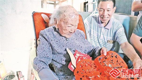 王美英老人爱好剪纸。吴德堋 供图 老人俏皮开朗,性情豁达温良。平日里,老人经常和孙辈们说起以前的苦日子,教育大家要勤俭持家,珍惜现在的好生活。 “她常会教晚辈如何为人处世,要多照顾别人,不要光想着自己。”大孙女婿詹有然深有体会,“她自身就是很好的表率。人家生孩子了,去慰问一下;人家结婚了,去慰问一下;人家考上大学读书了,也要去慰问一下。做得特别好。” “老人长寿,我们晚辈的心里更欢畅、做事更有劲,每做一件事都想着老人,我们要像她一样,把所有事情做得更好些。”詹有然说,如今,家人们最大的心愿,就是陪伴老人健健康康地迎来她的110岁寿辰。 |