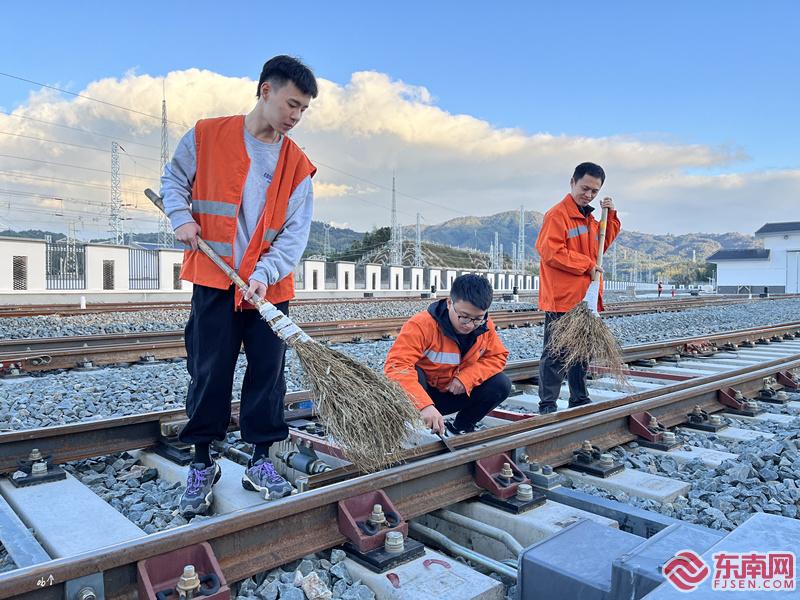 铁轨“B超”师对岔区积雪、积水进行清扫。 东南网11月22日讯(通讯员 粘孝康 吴学信 文 /图)每逢冬季,钢轨防寒、防冻、防断工作都是重中之重。为应对即将到来的寒冬天气,中铁南昌局永安工务段组织各车间铁轨“B超”师开展“扫雪除冰”应急演练活动,进一步提升干部职工故障应急处置能力和熟练掌握扫雪除冰技能。 铁轨“B超”师使用汽油喷灯对道岔冻结部分进行加热,使隐蔽冰雪、霜冻融化,并用棉纱、干布将其擦干,防止再次冻结。 道岔是将机车从一股道转入另一股道的连接设备,是铁路运输的“咽喉”,也是轨道最薄弱的部位。 尤溪线路车间管辖昌福线尤溪站25组道岔、中仙站19组道岔。前两年,由于气温较低,轨道结满霜冻,道岔出现冻结无法左右操动现象,造成列车晚点,旅客滞留。为应对此类突发事件,11月20日,该车间组织50余名干部职工于尤溪站27#岔进行扫雪除冰应急演练,确保每名职工都能够熟练使用除雪铲、除雪铁钩、汽油喷灯等工具,提高抢险速度。 铁轨“B超”师通过检查线路、道岔等设备,看铁轨是否处于良好状态。 宁化线路车间管内浦梅线建宁南站、兴泉线宁化站与江西省毗邻,冬季气温相比三明市其他地区温度偏低,同时,该车间管辖近130公里线路,管辖里程长且沿线车站多。为确保防寒、防冻、防断工作不出岔子,该车间提前将防寒物资和应急抢险工具材料备齐,以备不时之需。