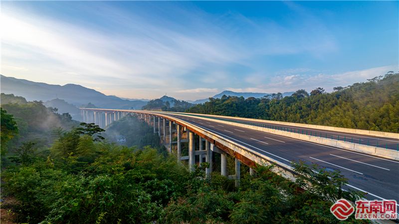 莆炎高速公路三明段 高杰生 摄 横跨三省的莆炎高速公路高质量建成通车,进一步完善了我国南部地区国家高速公路网络,为中部地区连接沿海城市新增一条经济大动脉,为沿线苏区老区高质量发展增加新的引擎。