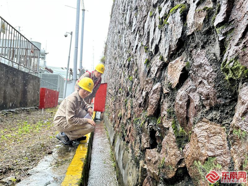 永安供电公司变电运维人员对变电站内排水沟排水情况进行巡视。俞慧敏 摄 |