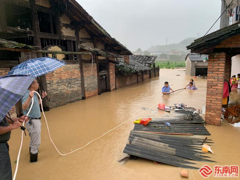 东南网6月14日讯(通讯员 张建情 文/图)6月13日,因长时间暴雨,三明永安市燕南街道吉峰村水位暴涨,多处房屋被淹,群众被困。由于洪水浑浊,民警温晨和辅警陈吉樟一边将绳子交由岸边群众固定,一边将绳子系于身上,手持木棍一步步探测前往受困群众家中。 民警温晨救助群众 民警温晨救助群众 途中水深,他们用自己的身躯在齐腰的洪水中给群众指引一条救援路线,通过救援绳一步一步将受困群众接力救出,共安全转移群众十余名。 |