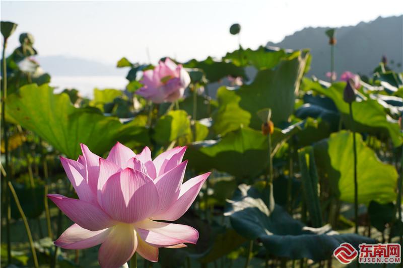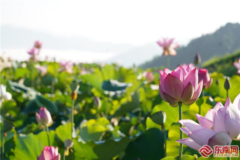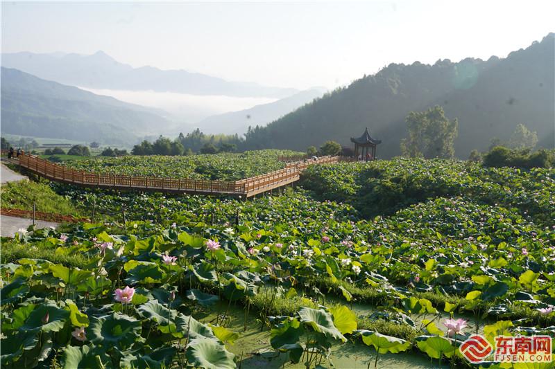 绽放的荷花与远处的高山云海相映成辉 东南网7月22日讯(通讯员 游海飞 文/图)7月22日,在三明市建宁县濉溪镇,千亩的谢马苏梯田莲海层层叠叠,千姿百态,或美丽绽放,或含苞待放,粉白淡红的花瓣在微风的轻抚下摇曳绿影浮动,淡淡荷香扑面而来,令人心旷神怡,宛如置身人间仙镜。 绽放的荷花吸引了蜜蜂前来采蜜 建宁是“中国建莲之乡”,种莲已有千年历史,建莲手工艺制作被评为省非物质文化遗产。目前,建宁县全县的建莲种植面积稳定在5万亩,年产通心白莲4000吨,可为莲农们带来超过4亿元的收入,全产业链产值达24.24亿元,建莲产业成为县域经济的支柱产业和农民增收致富的重要来源。 此外,建宁县大力发展观光农业,主打赏花经济,从桃花、梨花到荷花、梅花,一年四季,花开不断,四季赏花也成为了建宁生态农业观光旅游的新业态。 绽放的荷花层层叠叠,与远处的高山蓝天呈美丽的画面。 美不胜收,似美丽的仙境。 绽放的荷花与远处的高山云海相映成辉,美不胜收,似美丽的仙境。 |