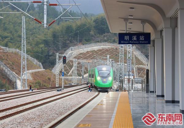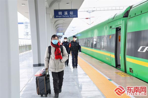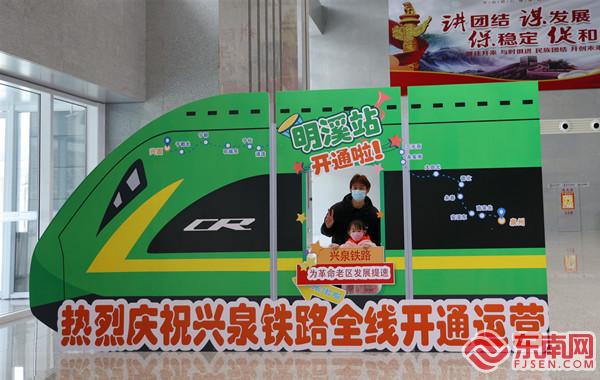 明溪站的首趟列车C879次复兴号缓缓驶入站台。 东南网12月30日讯(本网记者 肖晓敏 通讯员 雷玉平 文/图)“嘀~~”12月30日10时45分,随着明溪站的首趟列车C879次复兴号,缓缓驶入1号站台,标志着兴泉铁路明溪段正式贯通运营,明溪从此结束了不通铁路的历史。 乘客在明溪站下车。 列车停稳,首位到站乘客江尚容,提着行李箱,走出了动车门。他兴高采烈地说:“这条铁路的开通,让我们在家门口就可以坐火车,对我们大学生来说非常方便,火车票能打折,非常省钱,我们可以省下来做有意义的事情。” 江尚容是明溪人,如今在哈尔滨商业大学读书,每次回家都要转三四次车,旅途很劳累。这次,他原计划从哈尔滨坐火车到南昌,再从南昌中转到宁化,从宁化坐班车回明溪。“昨天下午,在前往南昌途中,我知道明溪火车开通的消息,马上用手机软件买了票。”他说。 乘客合影留恋。 兴泉铁路明溪站位于明溪县胡坊镇奋发村,于2017年3月开工建设,境内全长15.63公里。站房总建筑面积4997平方米,既参考传统古建筑格局,又融入西方建筑装饰元素,突显了鲜明的明溪侨乡特色。最为引人注目的“拱”形曲线屋顶造型,寓意“友谊之桥,跨越之桥”。 当天虽然天气微凉,但在兴泉铁路明溪站,不少当地父老乡亲怀着激动的心情来到售票窗口,咨询火车信息。 “我是泉州人,在明溪工作已经35年了。昨天在手机上看到消息,就马上买了回泉州的火车票,今天一大早就来等车了。以前,节假日才回泉州,都是坐班车,要四个多小时,现在通了铁路,两个多小时就能到,又快又方便,以后周末都能跟家人团聚,很开心!”吴先生笑着说。 走进候车大厅,只见乘客们拿着“兴泉铁路为革命老区发展提速”等标语,争先恐后地跟复兴号广告板合影留念,记录下这重要的时刻。明溪爱心企业福建烁坤竹制品制造有限公司的董事长刘长春,还拿出精心准备的礼物“红豆杉养生香”,和乘客一起分享兴泉铁路实现全线贯通运营的喜悦。 兴泉铁路明溪段通车是明溪发展史上具有里程碑意义的一件大事,意味着明溪阔步迈入新的“铁路时代”,交通区位条件迎来历史性飞跃,将极大便利明溪人民群众出行和货物运输,为持续推进新时代明溪革命老区高质量发展提供强劲动力。 相关链接:兴国至泉州铁路12月30日全线贯通运 |