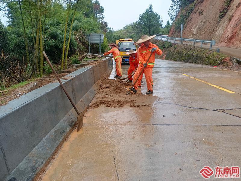 清流公路养护人员及时清理路面泥沙。 东南网3月23日讯(本网记者 肖晓敏 通讯员 吴文欣 黄千贵文/图)今日(3月23日)早上,三明多地遭遇强对流天气。东南网记者从尤溪、建宁公路分中心获悉,当地有部分路段出现路树倒伏、倾斜等现象,影响通行安全,分中心迅速组织各公路班站全力开展清障疏堵工作。 尤溪公路养护人员处理倒伏树木。 建宁公路养护人员暴雨清理隐患 |