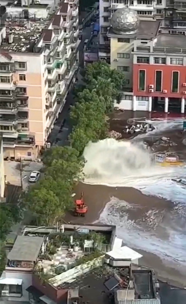 东南网7月25日讯(本网记者 肖晓敏 )7月25日上午8点左右,三明市第八中学综合楼重建项目施工单位,在施工过程中挖断学区路主供水DN400管道,影响周边供水,如徐碧二村、吉祥府邸等小区。东南网记者了解到,福建恒源供水股份有限公司已经在全力进行抢修。