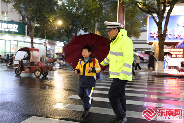 泰宁交警在辖区校园附近设立护学岗。张紫萍 摄 “同学,慢点走,雪天路滑。”句句叮嘱给寒冷的冬日带来丝丝暖意,也让那抹“荧光绿”更为亮眼。