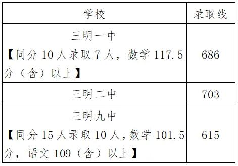 东南网7月18日讯 7月18日,三明市中招办按照《三明市2024年高中阶段学校招生录取办法》(明教中〔2024〕70号)的相关规定,组织各县(市、区)在市中考中招录取平台上统一进行切线,现将2024年市直属普通高中招生录取分数线公告如下: