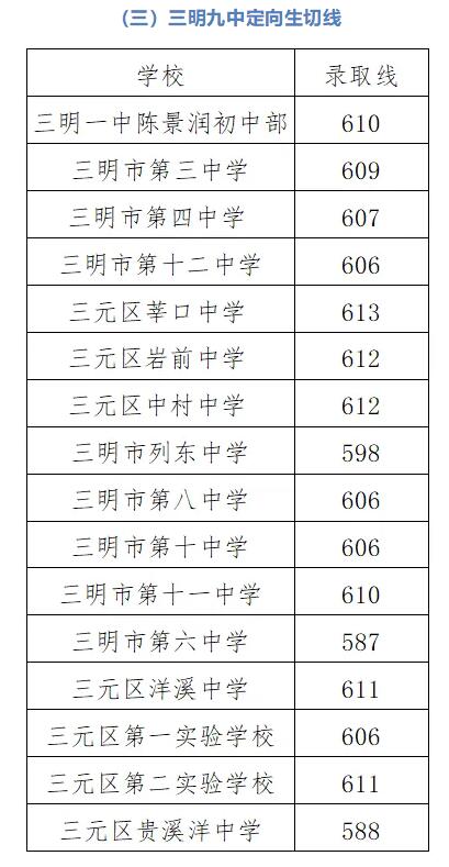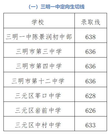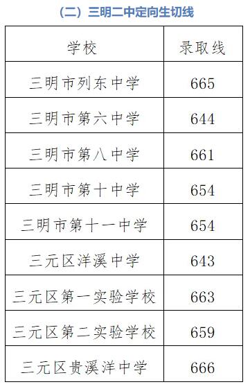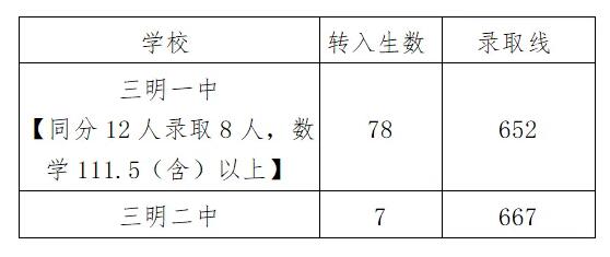 三、三明一中、二中未完成定向生转入统招生切线情况