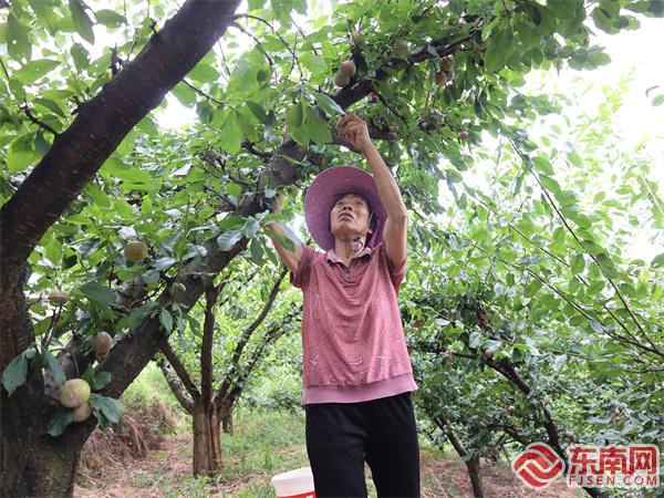 果农抢收芙蓉李。宁化县融媒体中心 供图 “我们及时督促果农进行抢收,把成熟、即将成熟的果实进行及时抢收、出售。对有需要支撑的、容易被台风吹倒的树冠树枝进行加固。台风过后及时进行清源,进行病虫害防治和肥水管理。”宁化县中沙乡农技站站长曹荣发告诉记者。果园负责人吴云伙说:“在农技员的指导下,我们已做好防台风应急措施,并组织村民争分夺秒抢收芙蓉李。”