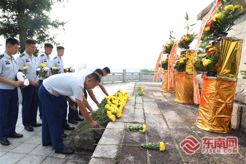 图为建宁县消防救援人员向烈士献花。曾程 摄