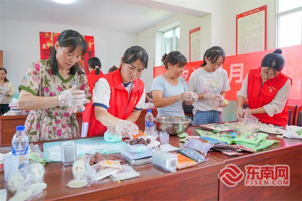 婶咛志愿服务队与八里桥村村民齐聚一堂,在欢声笑语中开启中秋冰皮月饼制作活动