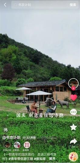 “在书京,供销社是乡村风物的展览馆;在书京,牛栏咖啡是文艺青年的新据点;在书京,书院成了记忆中的中转站;在书京,找到了在路上的感觉……”国庆当天,一条名为《一群青年的国庆邀约:走进三明书京村》在互联网上迅速走红,四位青年结合自己在书京村的工作,以青年的视角讲述了“我眼中的书京”。