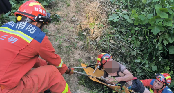 三明尤溪:老人被困山崖 消防紧急救援