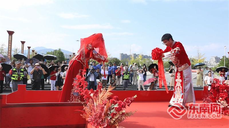 东南网10月14日讯(通讯员 夏淑珍 陈玉婕 文/图)10月13日,三明市宁化县市民休闲广场上乐声悠扬、喜气洋溢,“千年客家·一世良缘”第一届集体婚礼公益活动在此温馨举行。12对新人身着传统礼服,以简约而庄重的方式,共同践行移风易俗、婚事新办的现代理念,谱写出一曲文明新风的美好篇章。