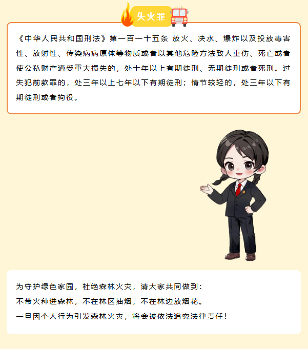 萌妞普法丨天干物燥,莫让“野火”酿“法祸”