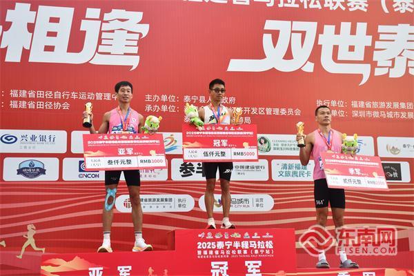 经过激烈角逐,本届泰宁半程马拉松男女组别冠军顺利诞生。男子组中,来自龙岩的选手王荣松以01:07:50的优异成绩摘得桂冠,许江程、游世源分别获亚军与季军;女子组中,来自厦门的选手黄雪梅凭借01:17:20的出色表现斩获金牌,吴小梅、林汀紧随其后,分别获得亚军与季军。
