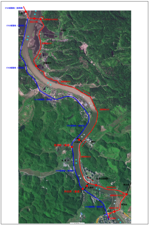 1.7座以上机动车辆:从横五线至熊家栋途经南会大桥往返梅口、杉城镇。