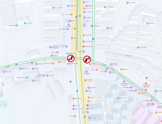3.畔溪公园行驶至长泰南路时,禁止左转。