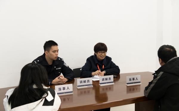 徐碧派出所老党员调解室:金牌调解员邱特娜正在调解一起家庭婚恋纠纷 三明公安供图