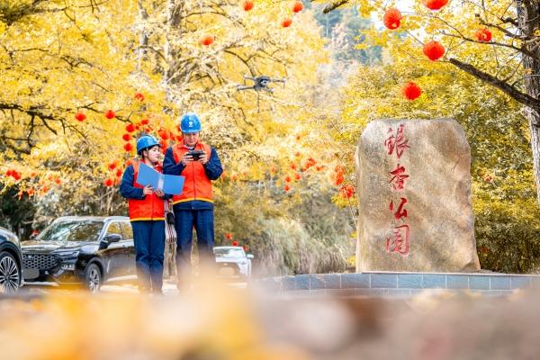 工作人员操控无人机对公园周边供电线路开展空中巡视 此次检查聚焦银杏节活动核心区域,重点排查线路老化、绝缘层破损、接线端子松动、配电箱安全隐患等关键问题。工作人员携带红外测温仪,沿公园步道、景观灯线路等区域逐一巡查,精准检测线路接头、配电箱等关键部位温度,对排查发现的3处安全隐患第一时间完成修复处理,并同步对公园内景观灯进行全面调试,确保照明效果达标,为夜间赏景营造安全舒适的环境。同时,工作人员操控无人机对公园周边供电线路开展空中巡视,有效克服地形限制,实现线路巡查无死角,大幅提升检查效率与覆盖范围。