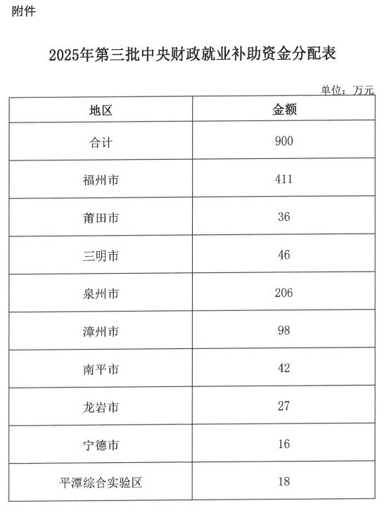 同时,三明还获批2025年第三批中央财政就业补助资金预算46万元。