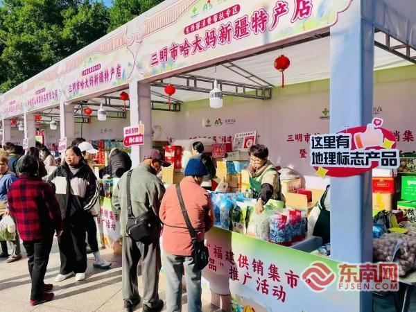 三明市第三届“福建供销集市”在三明广场启幕(三明市供销社供图) 覆盖更广,化身八方优品“会客厅” 本次活动,来自上海、新疆、宁夏、泉州、宁德、莆田、厦门、漳州等地供销社和三明11个县(市、区)组织了60家参展商,精选500多款极具地域特色的绿色农副产品和美食在此荟萃展销。 现场,上海老字号糕点,新疆牛羊肉、干果,宁夏枸杞,泉州虾姑、干贝,宁德黄花鱼、海带,莆田线面、枇杷糕,厦门姜母鸭、馅饼,漳州青梅制品等引人注目,三明本地的沙县拌面、永安笋干、明溪肉脯干、清流豆腐皮、宁化糯薏米、建宁通心白莲、泰宁锥栗、将乐竹荪、尤溪金柑、大田米粉等优质农特产品也备受青睐。从西域风情到东海鲜味,从山野珍品到家常好物,一站式满足市民“囤年货、品年味”的需求。 本次活动将持续至12月28日,是市供销社连续第三个年头在元旦前夕举办“供销集市”。作为集中推广三明市“绿都明品”的重要载体,活动共设置65个展位,精心布置了“绿都明品”、沪明合作、东西部消费帮扶、山海协作及网红直播区等5大专区。 据三明市供销社负责人介绍,除今天的“集中展”外,市供销社在上海、泉州、新疆等市外建设了4个“绿都明品”展示展销中心,在三明市委党校、明城国际酒店等地新建5个“绿都明品”展厅,这些展厅都是三明农产品“常态展”的重要平台。
