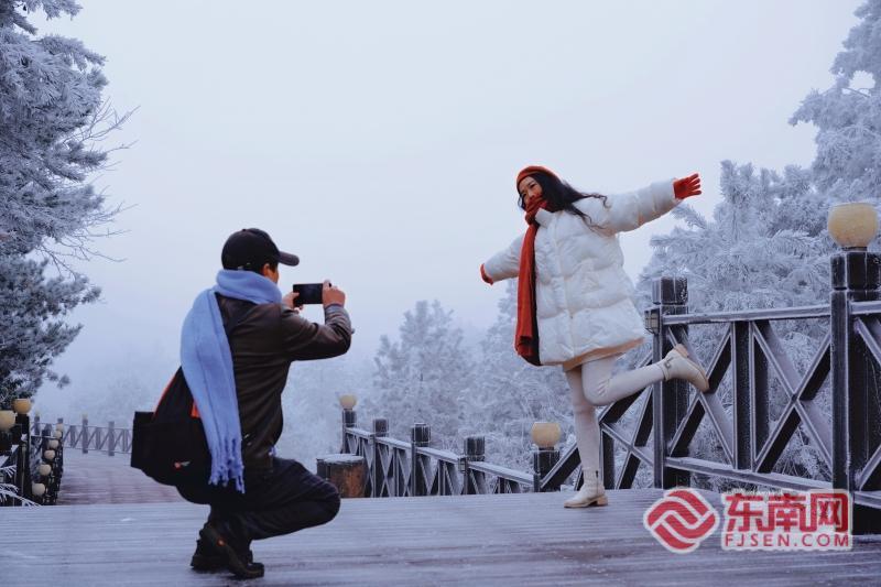 东南网1月8日讯(通讯员 张显超 李广 文/图)青山白头,玉树琼枝。1月6日,受强冷空气影响,三明泰宁县峨嵋峰迎来冬季雾凇美景,漫山枝条被剔透冰凌包裹,冰晶在风中簌簌作响,南国山间尽显北国风情。雾凇奇观为寒冬里的泰宁增添了别样景致,吸引不少游客踏着薄霜登山,或驻足观赏,或拍照留念,为将这短暂的冬日盛景定格。