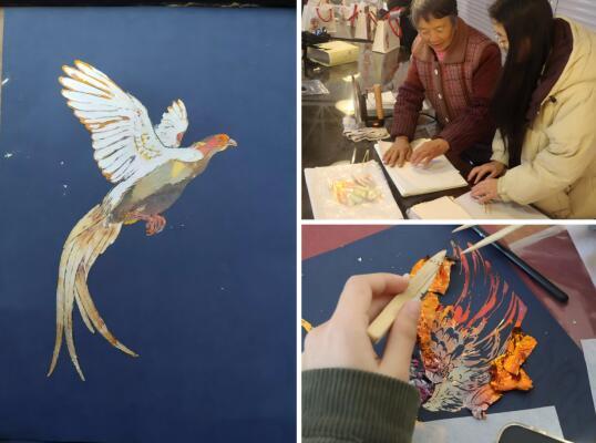 东南网2月7日讯 2026年伊始,一项承载着唐宋宫廷美学的非物质文化遗产——明溪紫云金箔彩画,正通过“守正创新”的多元实践焕发新生。来自三明学院教育与音乐学院的青年团队,以技艺研习为根基、校园美育为脉络、两岸对话为桥梁,不仅让古老技艺在生态融合与当代生活中找到新支点,更探索出非遗活态传承的青年路径,生动诠释了其在当代的多元价值。 1月19日至23日,三明学院“栖羽金窗”实践团队深入紫云村,跟随县级非遗传承人罗全娣,系统学习了从定线稿、勾线、刷胶到贴金箔、彩绘上色及面漆保护的全流程,完整复现了“金碧辉映”的古典工艺。为推动技艺与生态文化深度融合,团队以明溪生态标志“白鹇”为主题,通过野外观察与写生提炼,将白鹇的动态美转化为金箔艺术语言,创作出六幅融合传统技法与地域叙事的新作。这一“非遗+生态”的实践,突破了传统花鸟题材的局限,在保护中融入生态意识,为古老技艺注入了当代生命力。