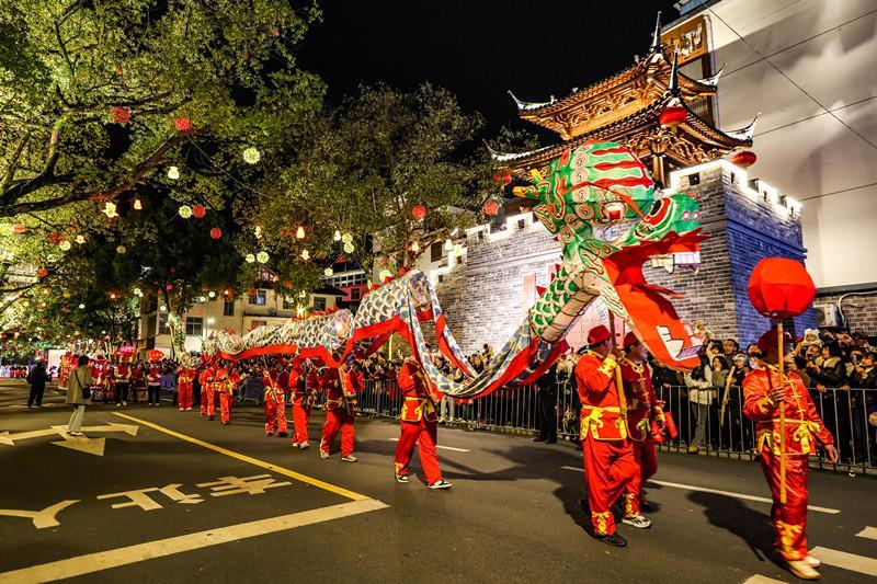 将乐县举办2026年元宵节龙灯踩街活动。(将乐县融媒体中心供图)