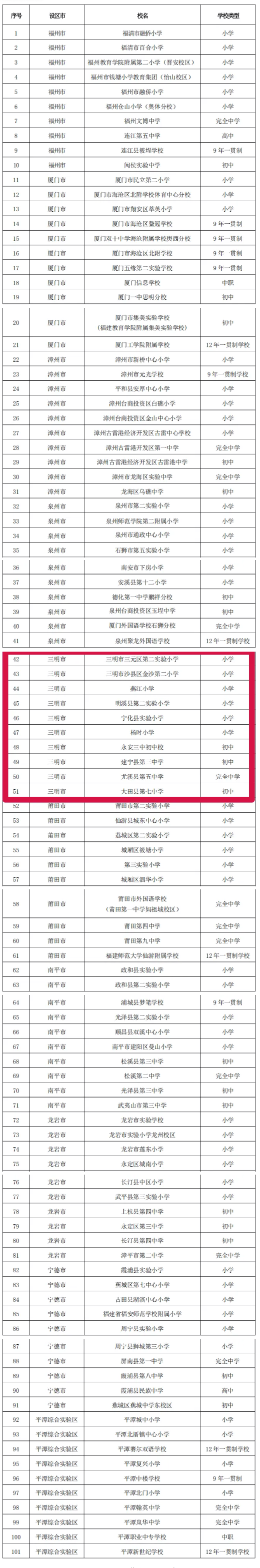 福建省第三批闽台棒垒球联动学校名单公布,三明10所学校入选。