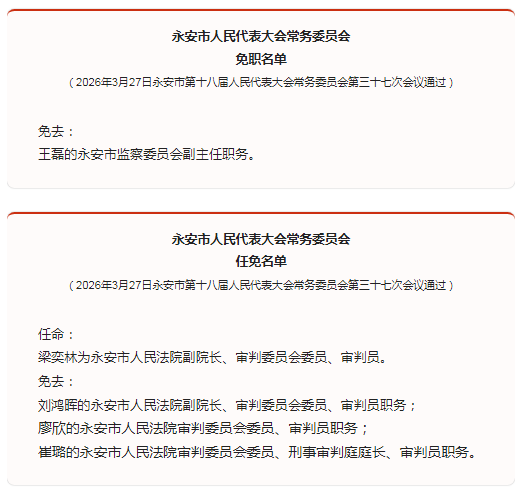 永安市人大常委会通过一批人事事项