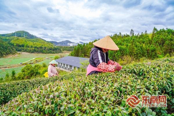 东南网3月30日讯(通讯员 李少兰 徐艳群 黄姗 戴雨萱 文/图)随着气温回暖,春意渐浓,三明市泰宁县春茶陆续进入采摘黄金期。3月27日,走进泰宁县朱口镇宇康茶厂茶叶种植基地,放眼望去,层层叠叠的茶树郁郁葱葱,茶农们穿梭于茶垄之间,娴熟地采摘鲜嫩的茶芽。