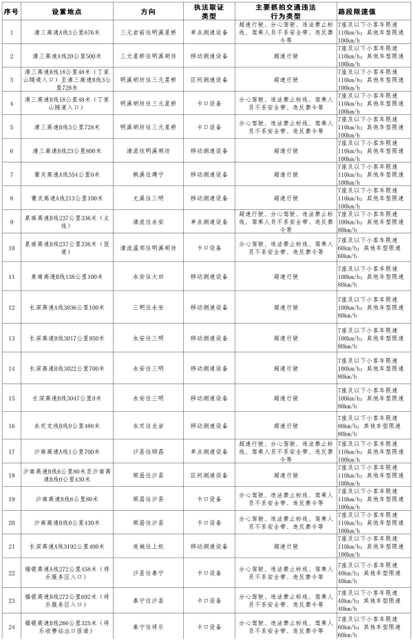 注意啦!三明高速新增24处违法抓拍点位