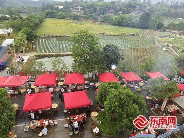 比赛现场。 东南网4月13日讯(本网记者 肖晓敏 通讯员 张铃珑 文/图)4月11日至12日,备受瞩目的“如画三明·烟火四季”乡村厨师大赛第一季在三明沙县俞邦村火热开赛。这场以“人情味、烟火气、慢生活、真山水”为文化内核的乡村美食盛宴,汇聚全网千万粉丝的网络名人、12支民间乡厨队伍,以及上千名食客,共同开启一场好看和好吃的人文之旅。 大赛由三明市委宣传部、三明市委网信办、三明市商务局、三明市文化和旅游局联合主办。12支乡村厨师队伍,24口大锅,巧用本地山野食材烹制12道地道美食,上千名食客围坐品尝乡村宴席。