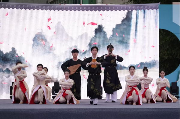 民俗嘉年华文艺演出现场。 文艺润乡韵 展演点亮民俗盛宴 当天17时,三明学院西大门广场化身文艺舞台,学院师生与社区文艺队伍联袂献艺,奉上精彩视听盛宴。二胡古筝合奏《万疆》悠扬绵长,男女声四重唱《宪法伴我们成长》融普法于旋律,陶笛七重奏《敕勒歌》空灵雅致,舞蹈《散乐图》《春望》尽显古典柔美与春日生机,萨克斯与贝斯合奏《十年》深情动人,男声小组唱《三明后生仔》唱响青年朝气。多元节目赢得现场阵阵喝彩,充分展现学院学子精湛艺术素养与昂扬青春风貌。