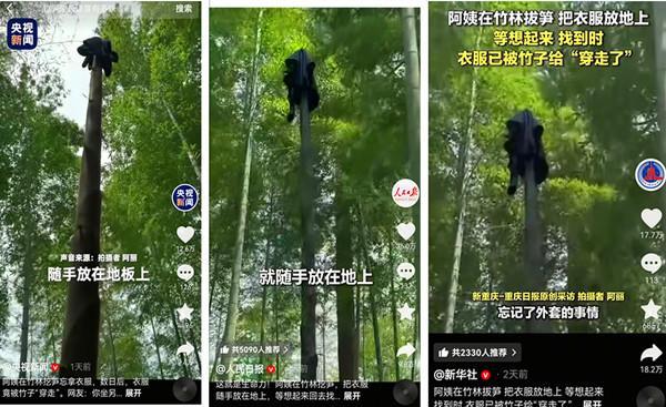 爆火出圈!三明阿姨挖笋忘拿衣服 竟被竹子“穿走”
