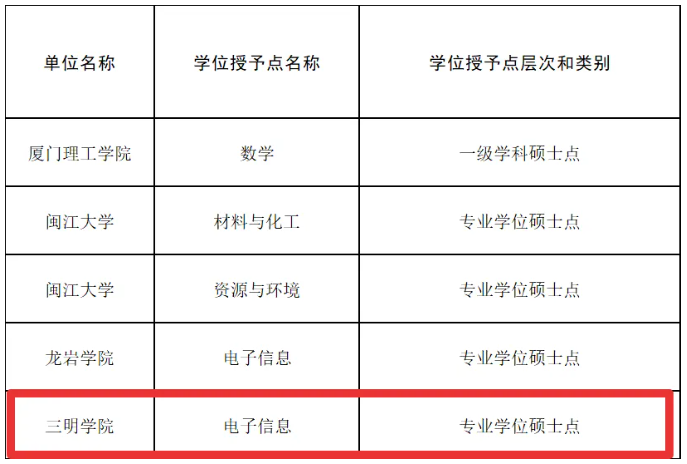 东南网4月24日讯 近日,福建省教育厅发布公示,福建拟推荐四所高校新增设硕士点,其中,三明学院拟增设电子信息专业学位硕士点。