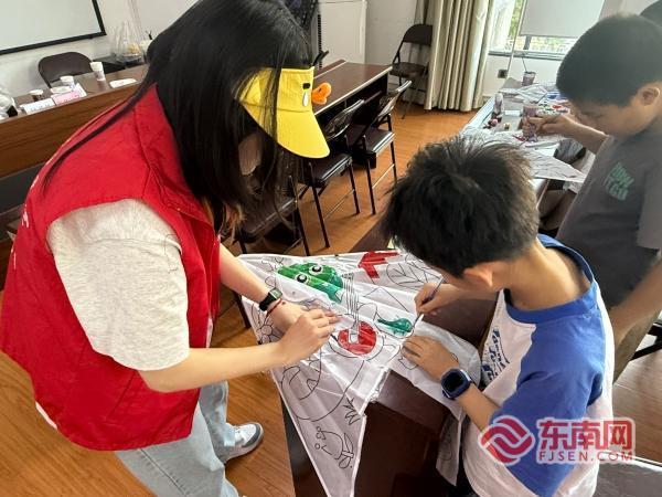 孩子们在志愿者的带领下制作风筝。富华社区供图