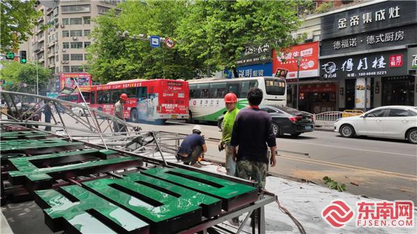 市政部门正在将广告牌钢架进行切割托运 东南网记者 蔡晓卿 摄