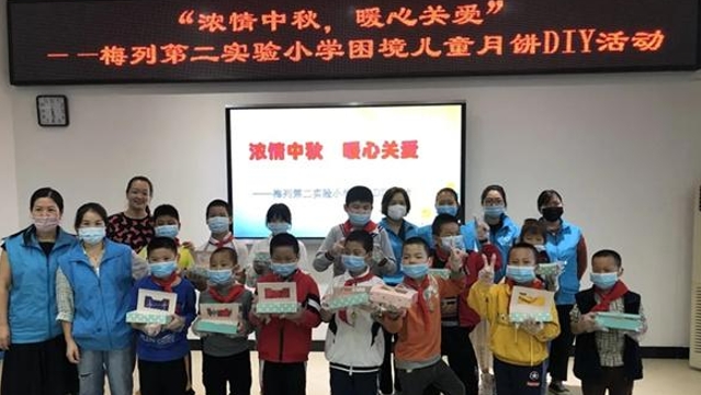 孩子们在家长志愿者的指导下亲自做月饼 东南网9月30日讯(通讯员 卢玉平 文/图)9月30日下午,中秋来临之际,梅列区第二实验小学举行“浓情中秋,暖心关爱”月饼DIY活动。各班困境儿童、部分老师和家长志愿者参加本次活动。 活动中,孩子们在家长志愿者的指导下揉面、和料、印模、装盒,参与了整个月饼的制作过程,体验了劳动的快乐,感受到了“家”的温暖,一个个洋溢着幸福的笑脸让现场充满了爱的阳光。