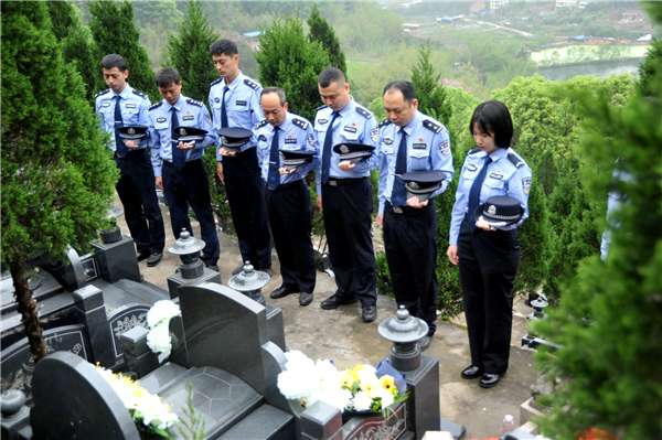 尤溪县公安局清明前夕开展祭奠英模活动 当天,在英模胡晓卫同志的墓碑前,民警身着警服,手持菊花,神情严肃,整齐地站成一个方阵。仪式上,民警肃立脱帽默哀,表达对胡晓卫英模深深的追思之情,随后,大家秩序井然地到英模墓前献花。 祭奠队伍中,有一名特殊的女警,她就是英模胡晓卫的女儿胡雨恬。即将从警校毕业的胡雨恬身穿警服在父亲墓碑前庄重地敬礼,表示要继承父亲遗志,传承精神,对党和人民无限忠诚,学习他执法为民、爱岗敬业、恪尽职守、无私奉献的高尚品德,为维护社会稳定,服务经济发展,贡献自己的全部力量。 |