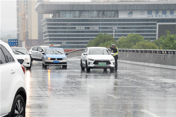在沙县公安分局民(辅)警的引导下,三明北站交通秩序明显好转。陈永煌 摄 |