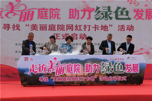 启动仪式 东南网记者 蔡晓卿 摄 东南网3月8日讯(本网记者 蔡晓卿)为全面展示三明市美丽庭院创建成果,推动乡村振兴再出发,实现一季度“开门红”,3月7日,“走近美丽庭院 助力绿色发展”暨寻找“美丽庭院网红打卡地”活动启动仪式在三明泰宁县举办。 本次活动由三明市妇女联合会、中共三明市委市直机关工作委员会、三明市总工会、三明市农业农村局、三明市文化和旅游局主办,泰宁县妇女联合会、泰宁县农业农村局、泰宁县文体和旅游局、泰宁县工业和信息化局、泰宁旅游管委会、泰宁县梅口乡人民政府承办。
