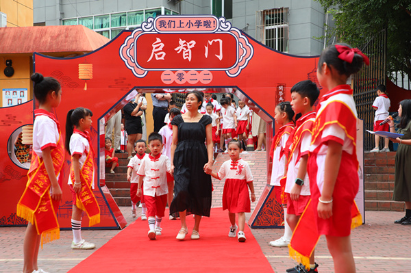 建宁县第二实验小学一年级新生进入“启智门”。曾程 摄 东南网9月1日讯(本网见习记者 练为泉)又到一年开学季,三明市中小学错峰有序开学。 8月22日,沙县区所有高中开学。 8月30日上午,三元区第二实验小学举行“立德明智筑梦启航”2022级秋季一年级新生入学礼。